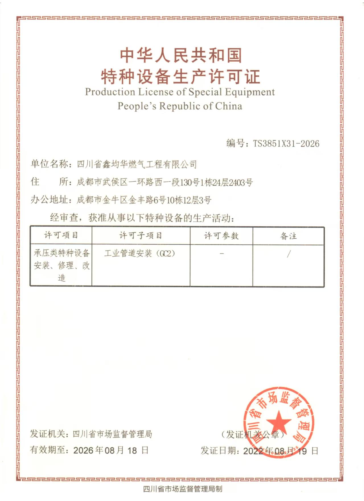具备国家质监局颁发的压力管道(GB1、GC2)压力容器1级安装许可和相关的资质(资格),拥有一支能够吃苦耐劳、艰苦奋战的工程建设队伍,承建的工程项目已经遍布四川、重庆、云南、贵州、山西、宁夏、内蒙古等地区,深受客户好评